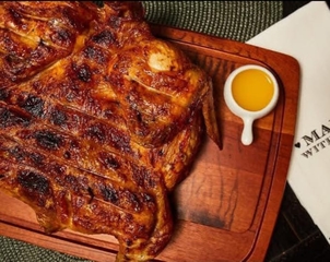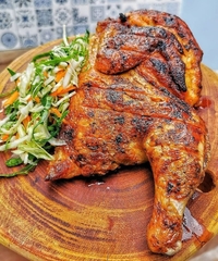 | Delicioso Galeto assado na brasa com toque de Barbecue+shoyo e ervas. Uma explosão de sabor. Acompanha Farofa de Batata Palha |